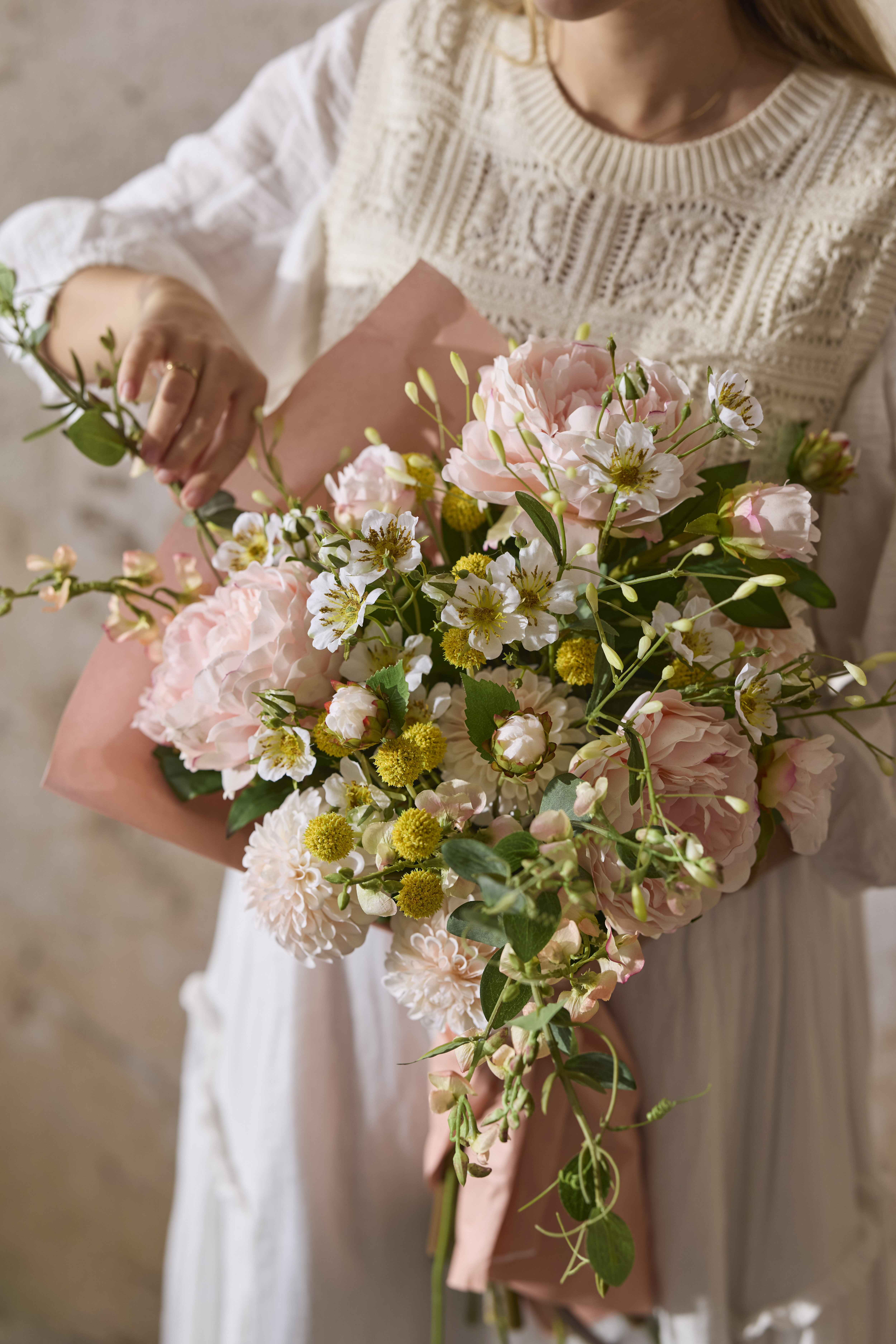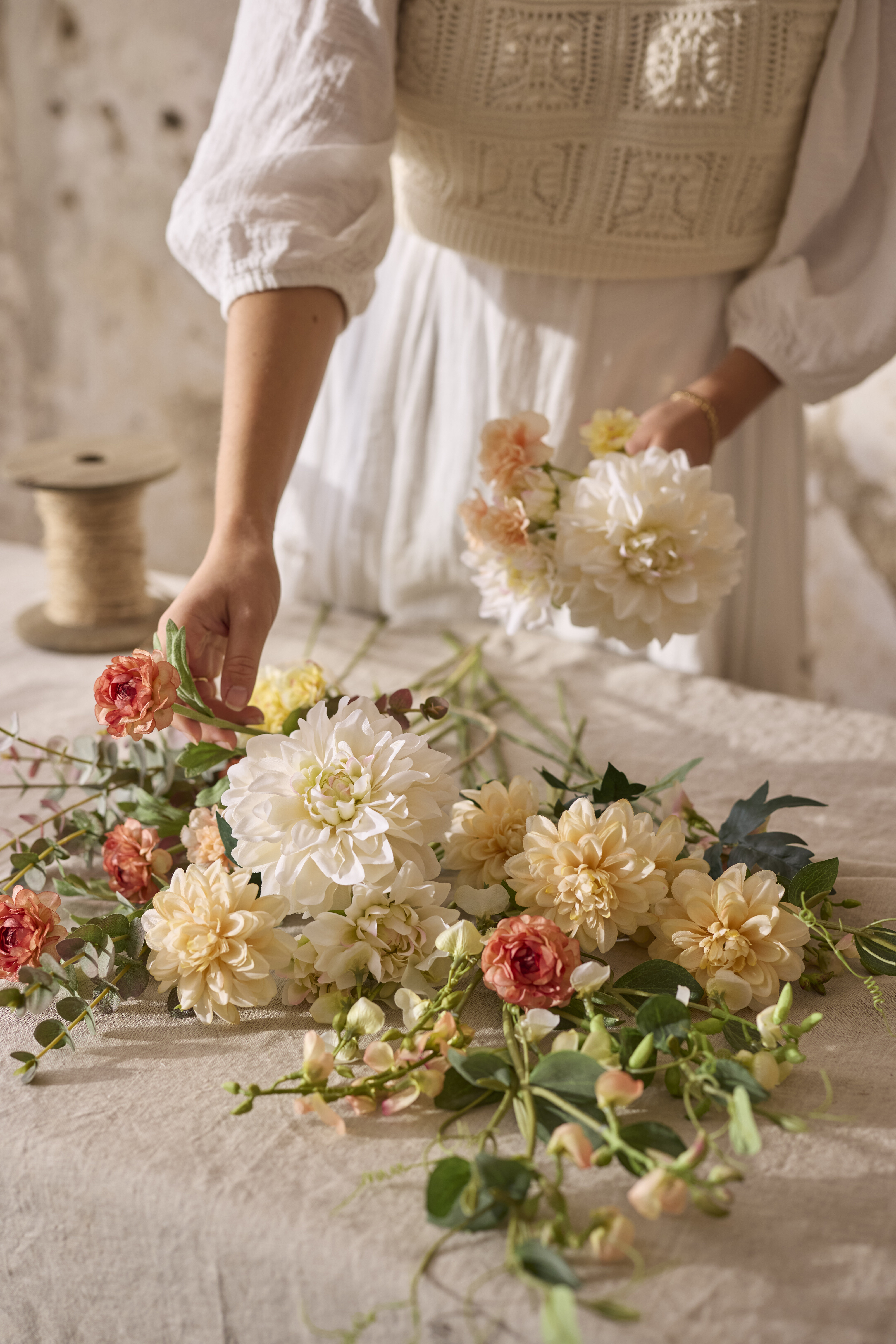 Enkel borddekking med kunstige blomster til våren og alle sommerens arrangementer. Tips til midtsommer, bursdager, morsdag, bryllup!