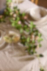 Hengende dekorasjoner med kunstige blomstergirlandere blir ikke bare vakre innslag på festen, men også tidløse elementer i hjemmets interiør.