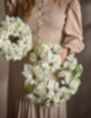Denne vakre hvite julestjernekransen, med en generøs størrelse på 50 cm, er en perfekt dekorasjon for å skape en lys og fredfull julestemning. De hvite blomstene symboliserer vinter og renhet og passer utmerket som dekor på dører og vegger, eller som en del av en større innredning. Et stilrent valg for deg som ønsker en klassisk, men moderne juledekorasjon.