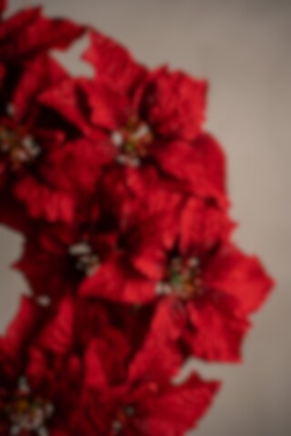 Den røde julestjernekransen finnes i størrelsene 30 og 50 cm og er en tradisjonell dekorasjon som sprer julestemning. De røde blomstene gir et varmt og innbydende uttrykk, perfekt for dører og vegger i høytiden.
