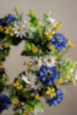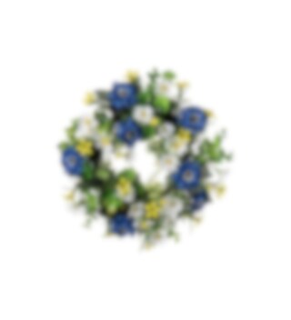 Sommerkrans i flere farger, 35 cm i diameter. La hjemmet blomstre hele året med denne livlige kransen i blåtoner. Passer like godt på døren, på veggen eller som borddekorasjon.