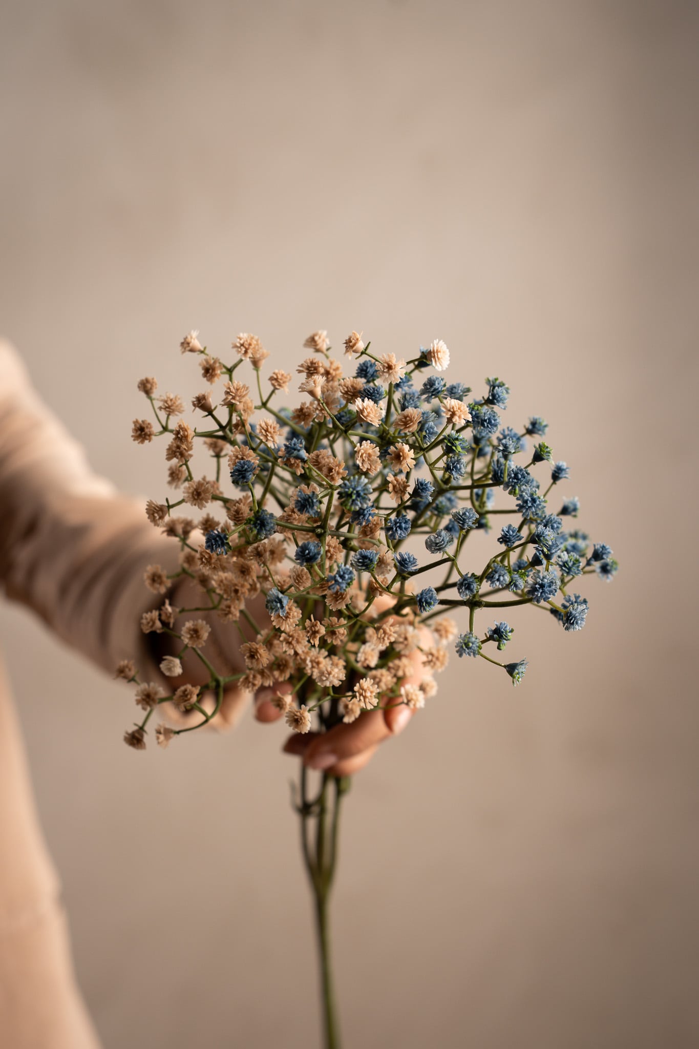 Brudeslør i blå tone, 70 cm. En luftig og fargerik kunstig plante som tilfører et romantisk uttrykk.