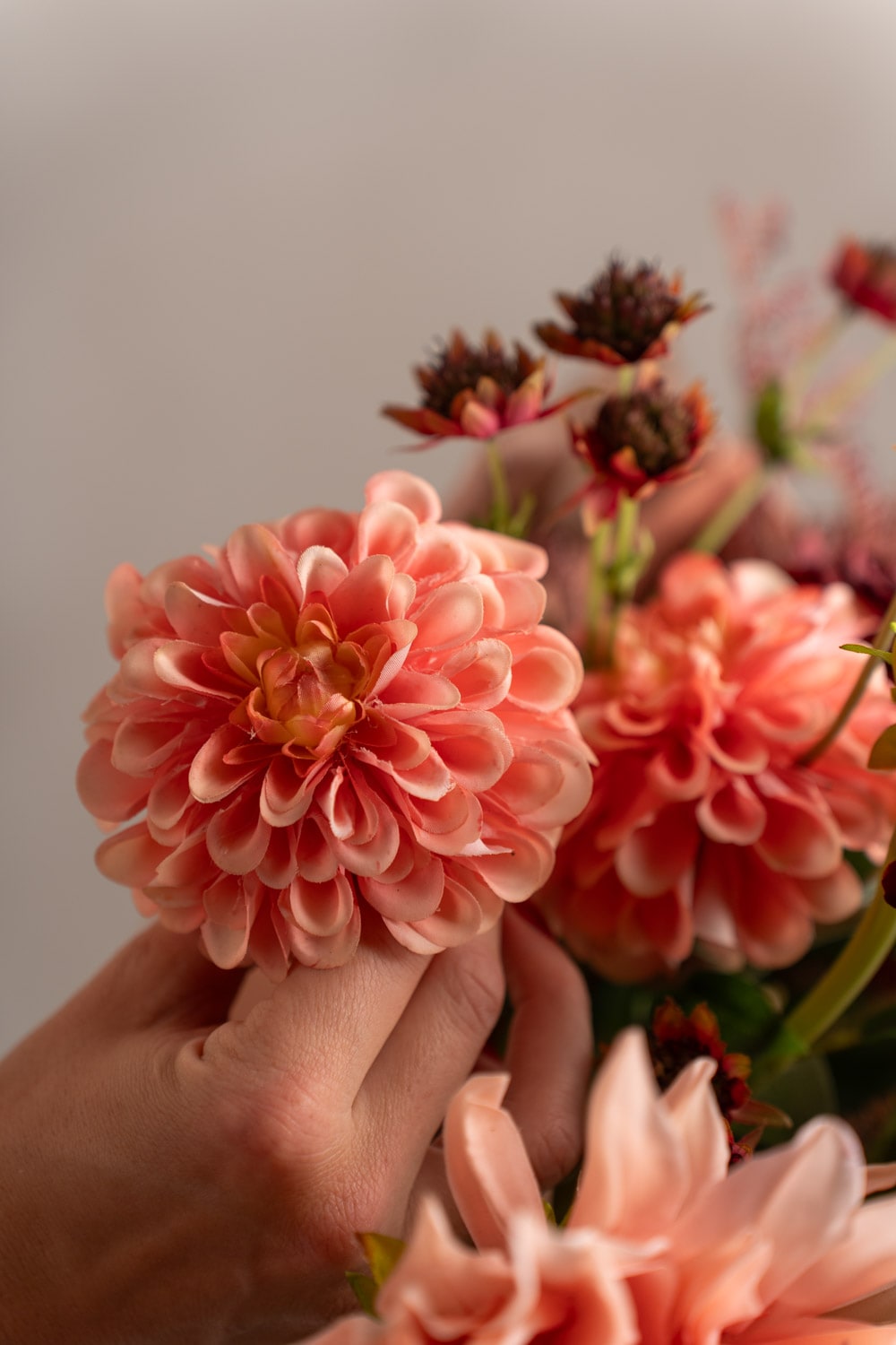 Skap en elegant og livlig atmosfære med Dahlia. De vakre og realistiske blomstene krever verken vanning eller spesiell stell, og gir et friskt og stilfullt uttrykk.