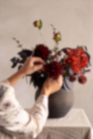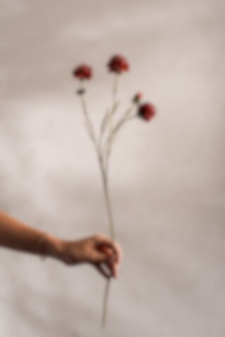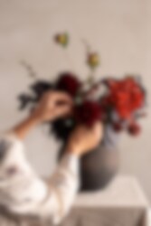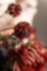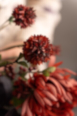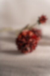En liten perle i rødt. Klinten har en liten, rund og sjarmerende knopp som virkelig fanger blikket. Den dype rust- og rødfargen gir buketten et romantisk preg.