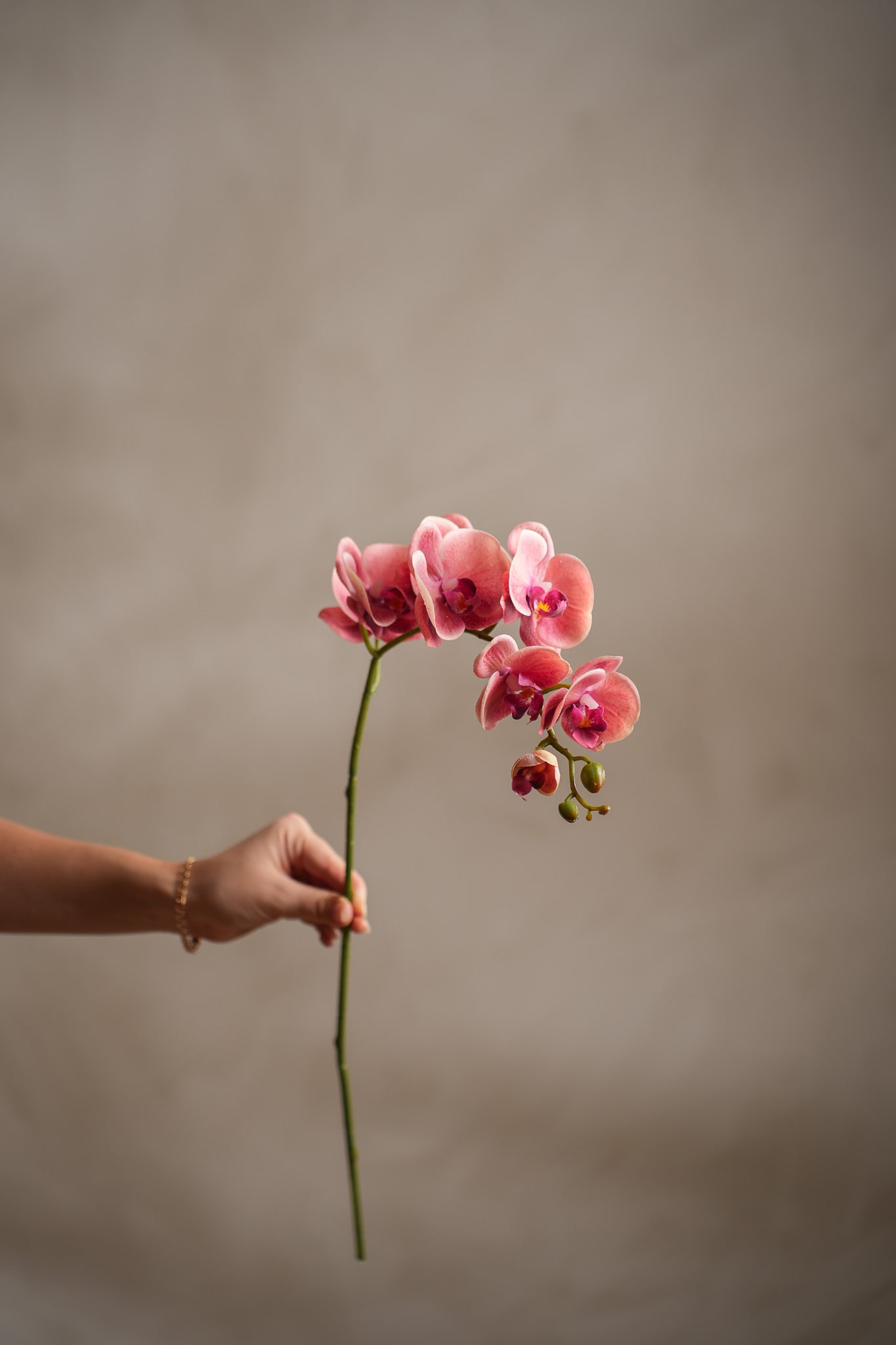 Phalaenopsis i Rosa, 75 cm. De slanke stilkene og de elegante blomstene gir et sofistikert uttrykk. Perfekt for deg som ønsker en eksklusiv følelse uten stell.