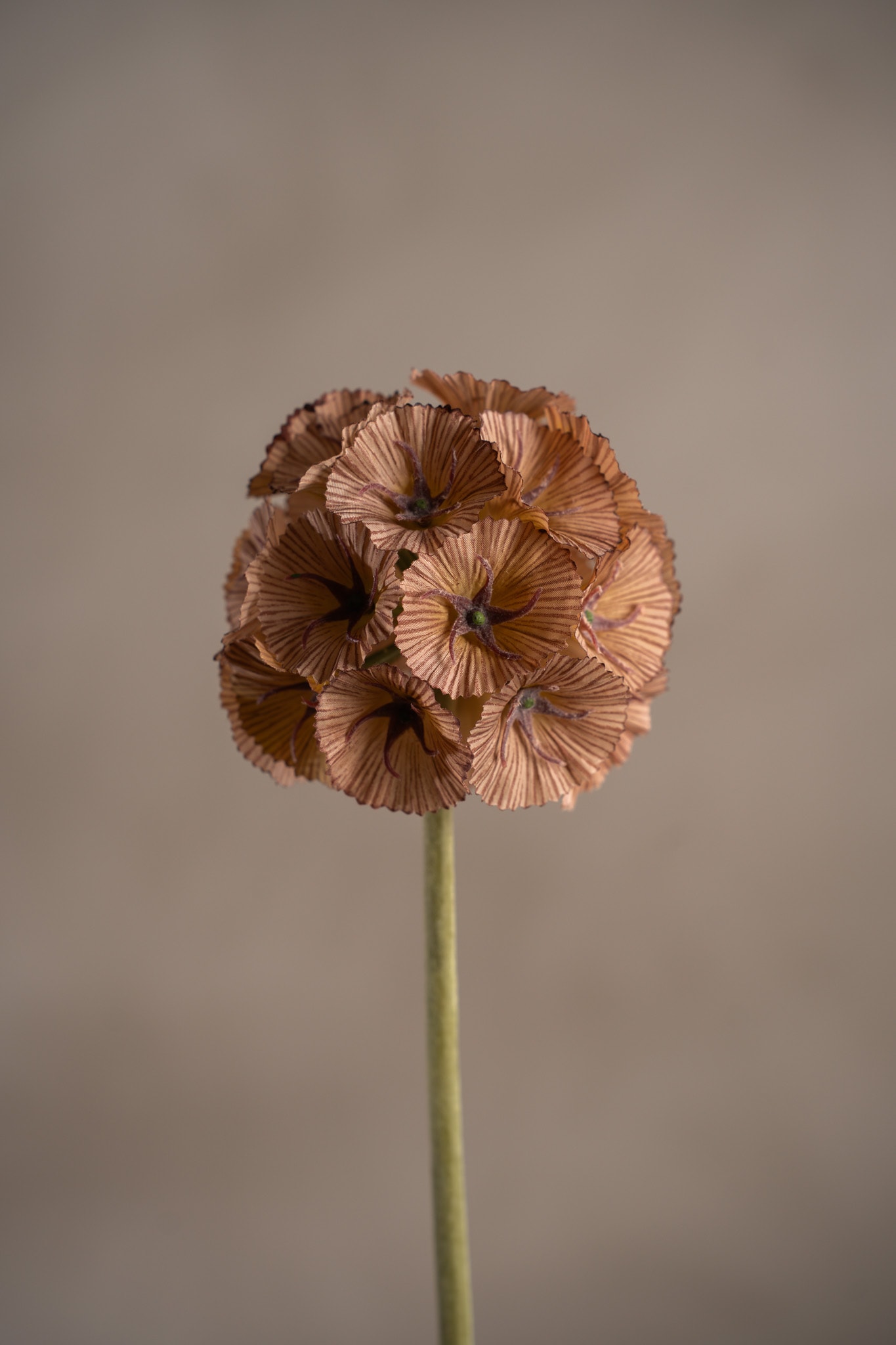 Denne bruntonede Scabiosa er et stilig valg for høstarrangementer. Med en høyde på 60 cm og realistisk form skaper den et naturlig og harmonisk uttrykk – helt vedlikeholdsfri.