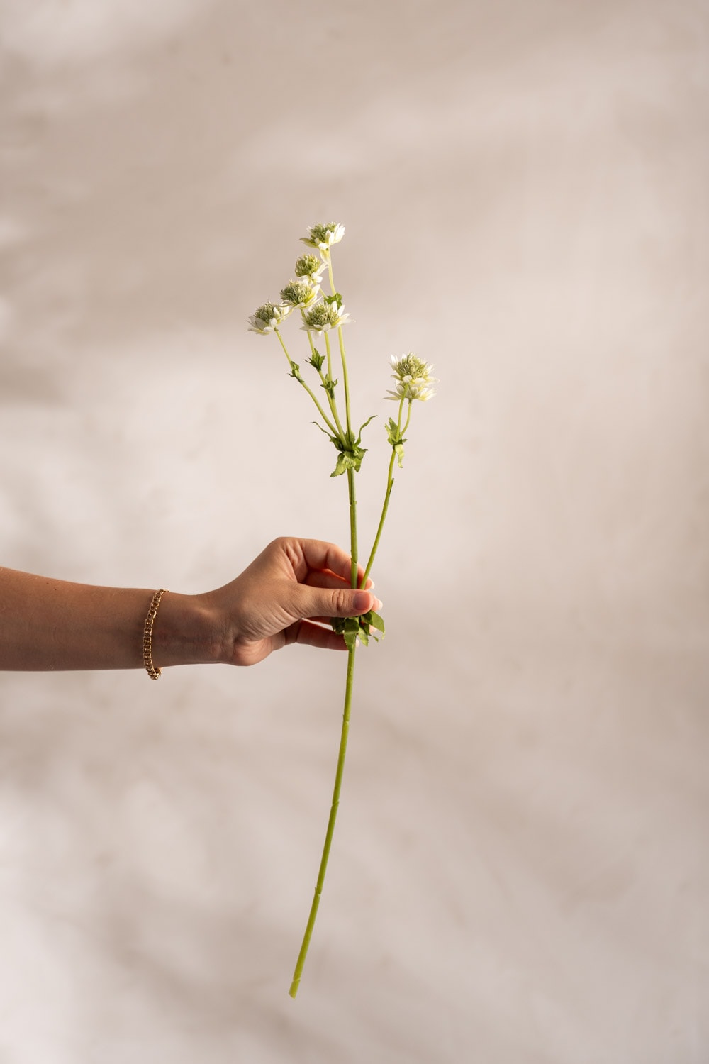 Vår hvite stjärnflocka er som plukket rett fra en sommereng. Med sine delikate, rosa blomster og grønne, ville stilker gir den en følelse av frihet og natur. Den elegante blomsten er perfekt for å skape både romantiske og rustikke arrangement.