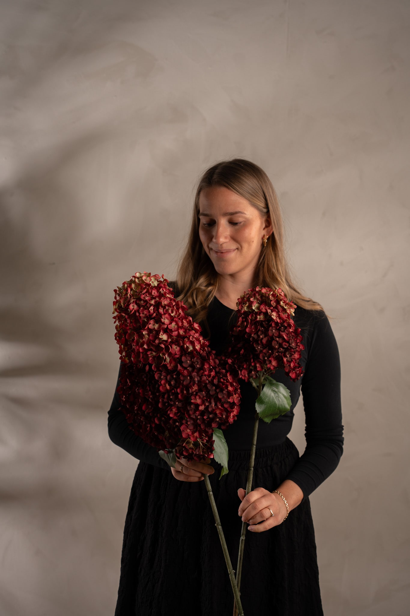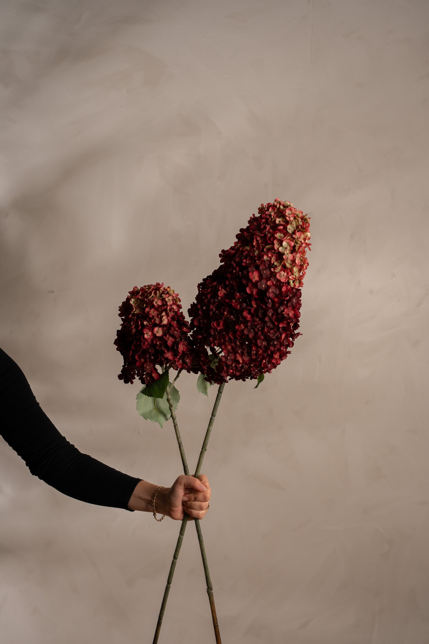Denne burgunderfargede Syrénhortensia er et elegant tilskudd til interiøret ditt. Med sin høyde på 84 cm og fyldige blomsterklaser gir den et eksklusivt og levende uttrykk – helt vedlikeholdsfri.
