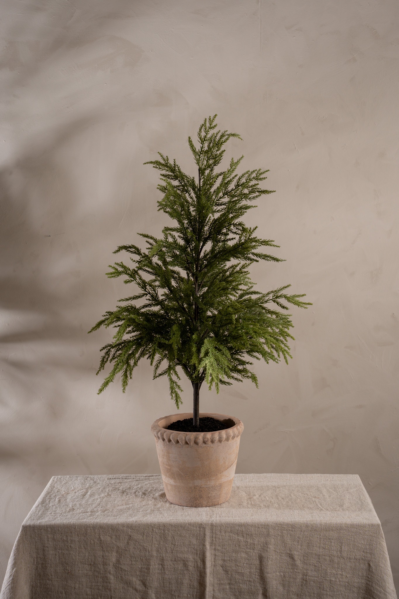 Grønt gran, 105 cm høyt, gir en festlig atmosfære.