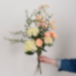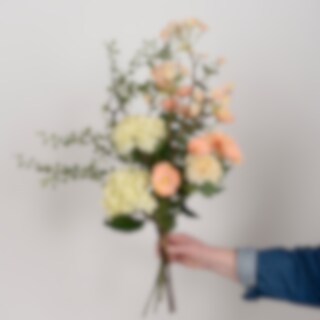 Bukett Emma er en elegant og velbalansert arrangement der hortensia, zinnia, pyntekorg og blomsterlønn møtes i myke, naturlige toner. Eucalyptus og muehlenbeckia gir en lett og luftig følelse som skaper både dybde og bevegelse. En rik og stilren bukett som passer like godt i moderne som klassiske miljøer – helt vedlikeholdsfri og enkel å plassere.
