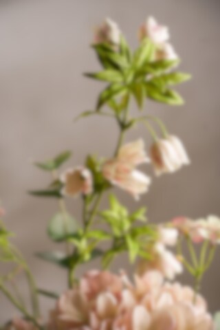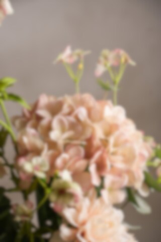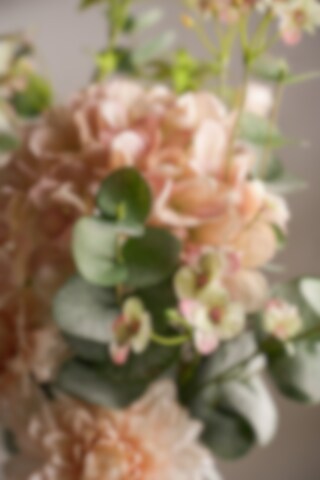 En harmonisk bukett i myke toner med hortensia, dahlia, stemorsblomst, enkianthus og eucalyptus. Kombinasjonen av rike blomster og luftig grønt skaper et levende og velbalansert uttrykk som passer i både moderne og klassiske miljøer. Helt vedlikeholdsfri og enkel å plassere.